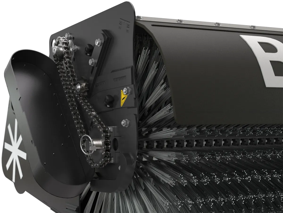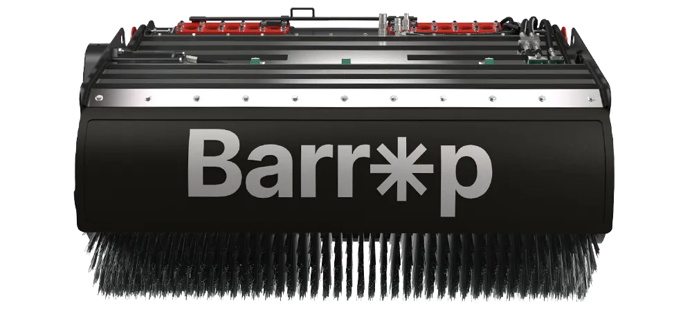 The Barrop brush features a 70 cm ring diameter and 24 cm long bristles, allowing it to cover a larger sweeping area with each pass.
